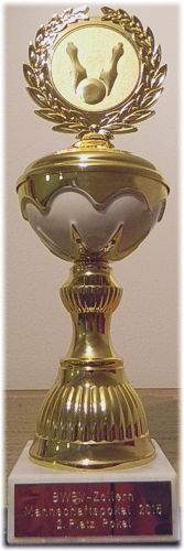 Im Bild der Mannschafts-Pokal für den 2. Platz, jeder Kegler bekam eine Medaille.